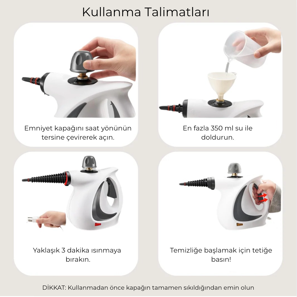 CleantificPro Buharlı Temizleyici, suyu yüksek sıcaklığa ulaştırarak ürettiği güçlü buharla, yüzeylerdeki inatçı kir, yağ ve bakterileri derinlemesine temizler.